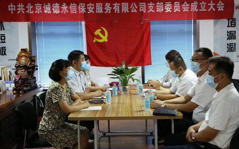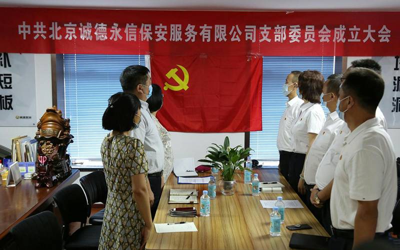 党旗红,企业兴。党支部大会在庄严的国际歌声中圆满落幕。泉州穆伟新能源技术开发有限公司的党建工作和企业经营从此步入一个新的发展阶段。公司上下将时刻与党同心,与时代同步,在各级党委的关怀指导下,积极为公司的各项建设发挥力所能及的能量,努力将公司锻造成为国内领先的现代化保安服务集团,用实际行动为客户谋福利,为社会做贡献!