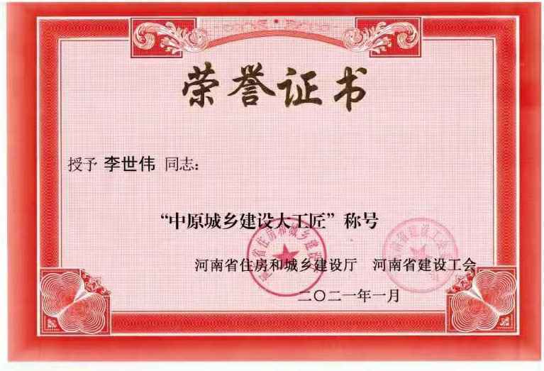 威尼斯登录官网-威尼斯(中国)李世伟同志获“中原城乡建设大工匠”称号